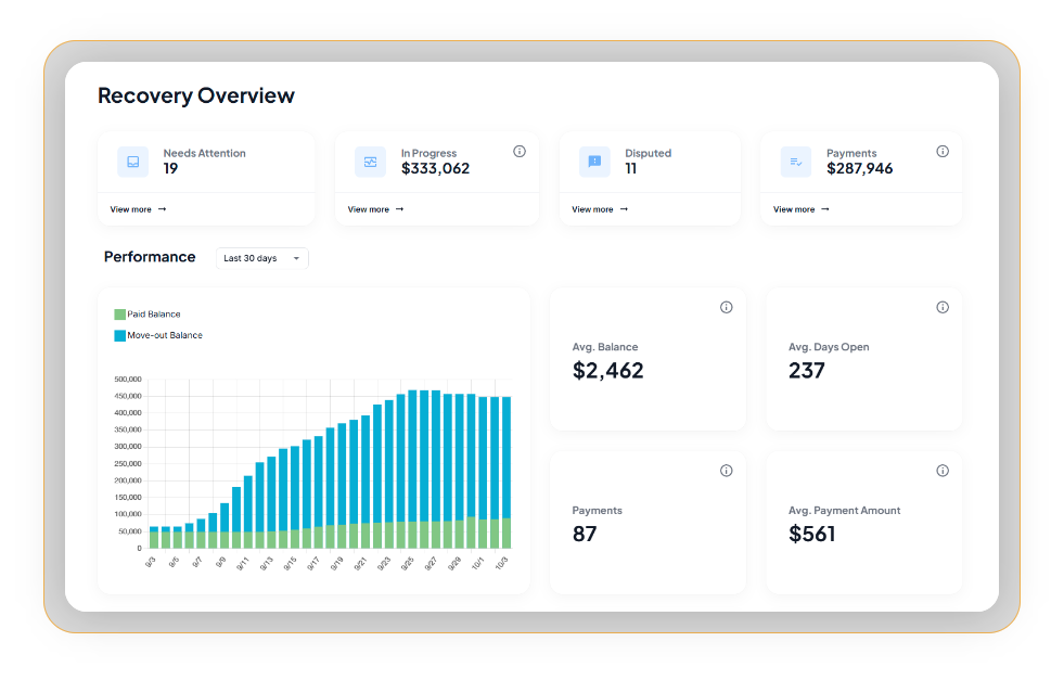 Bend, powered by Genesis, automates the first stage of rent recovery—sending branded, compliant outreach to resolve balances fast. If a balance remains unpaid, Genesis takes over automatically, delivering trusted, full-service collections.